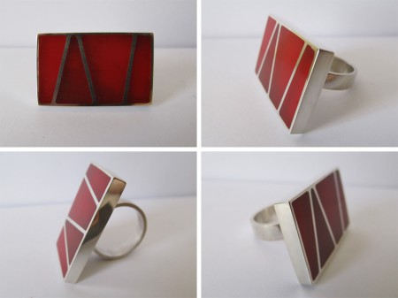 Anillo plata 950 y acrílico rojo. Detalles interiores en plata 950. N° 14.