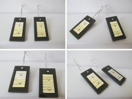 Aros de plata 950 y acrílico gris. Texturado con remaches. Tamaño 18 x 35 mm.