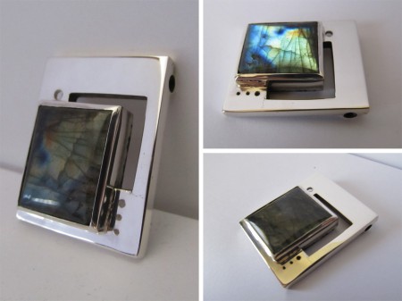 Colgante en plata 950 y Labradorita engastada. Técnica mixta de calado y engaste.